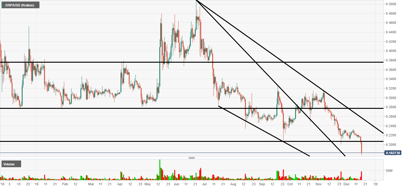 Ripple has suffered a crushing 11% fall on Tuesday. Ripple bulls had previously signed a petition complaining to Ripple about the performance of the coin. The psychological 0.20 level had been holding firm but during Tuesday’s wave of selling it just could not cope.