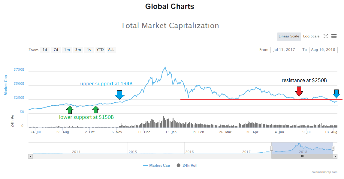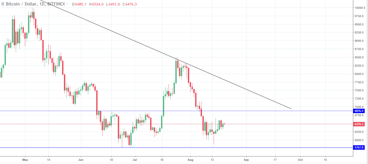 From the recent low to around $190B on August 14. the cryptocurrency market cap evaluation has been steadily recovering and is currently at around $216B which is 26 billion dollar recovery in 6 days. Even though the market recovers the price of Bitcoin has been hovering around the same levels failing to break the $6500 resistance level.